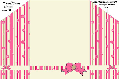 Convite Triangular Transpassado Frente Listras Rosa e Bege: