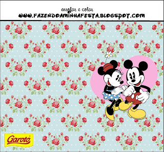 Rótulo Água Mickey e Minnie Romântico Vintage: