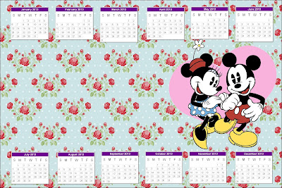 Convite Calendário 2013 Mickey e Minnie Romântico Vintage: