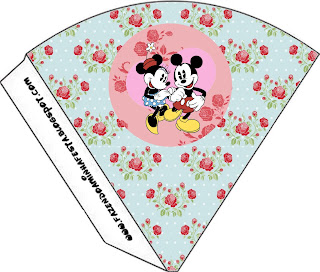 Cone Guloseimas 4 lados Mickey e Minnie Romântico Vintage: