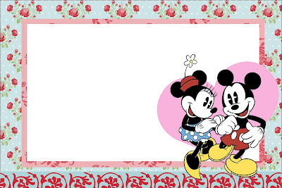Moldura Convite e Cartão Mickey e Minnie Romântico Vintage: