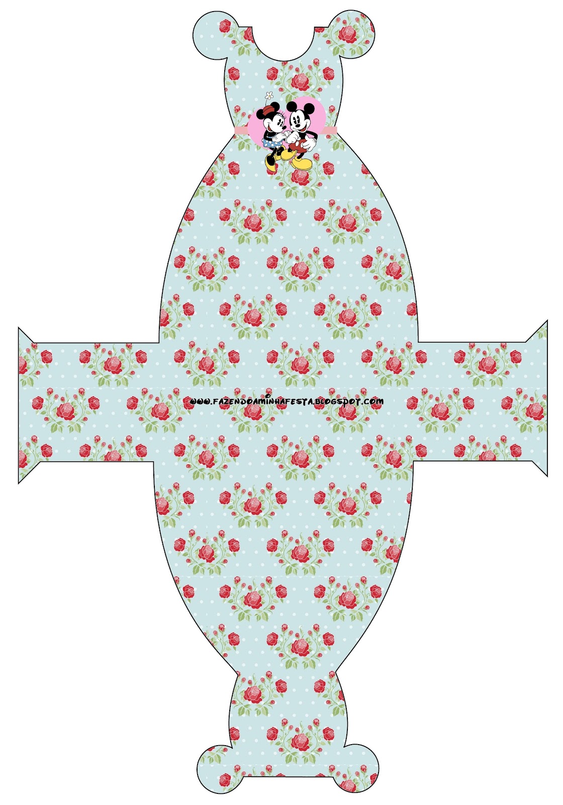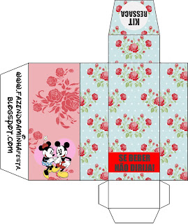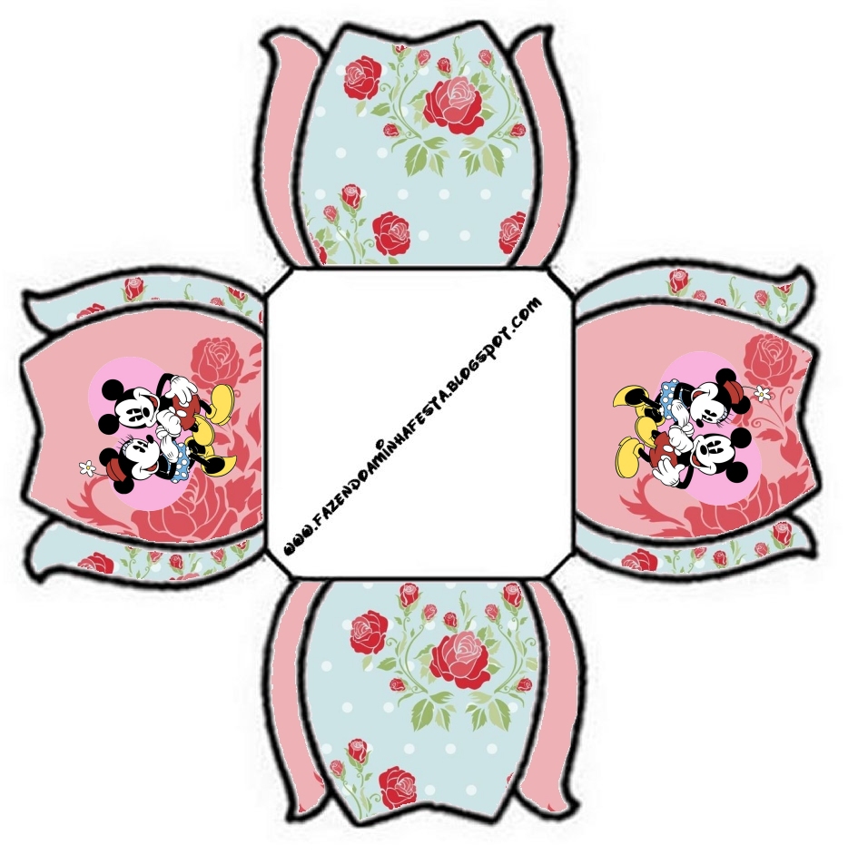 Convite Caixa Tampa Mickey e Minnie Romântico Vintage: