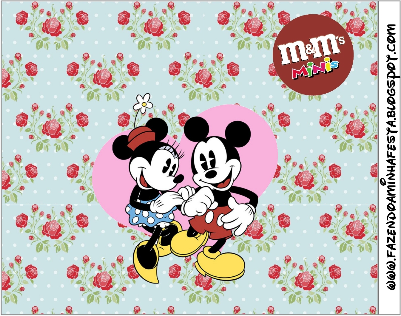 Rótulo Mini M&M Mickey e Minnie Romântico Vintage: