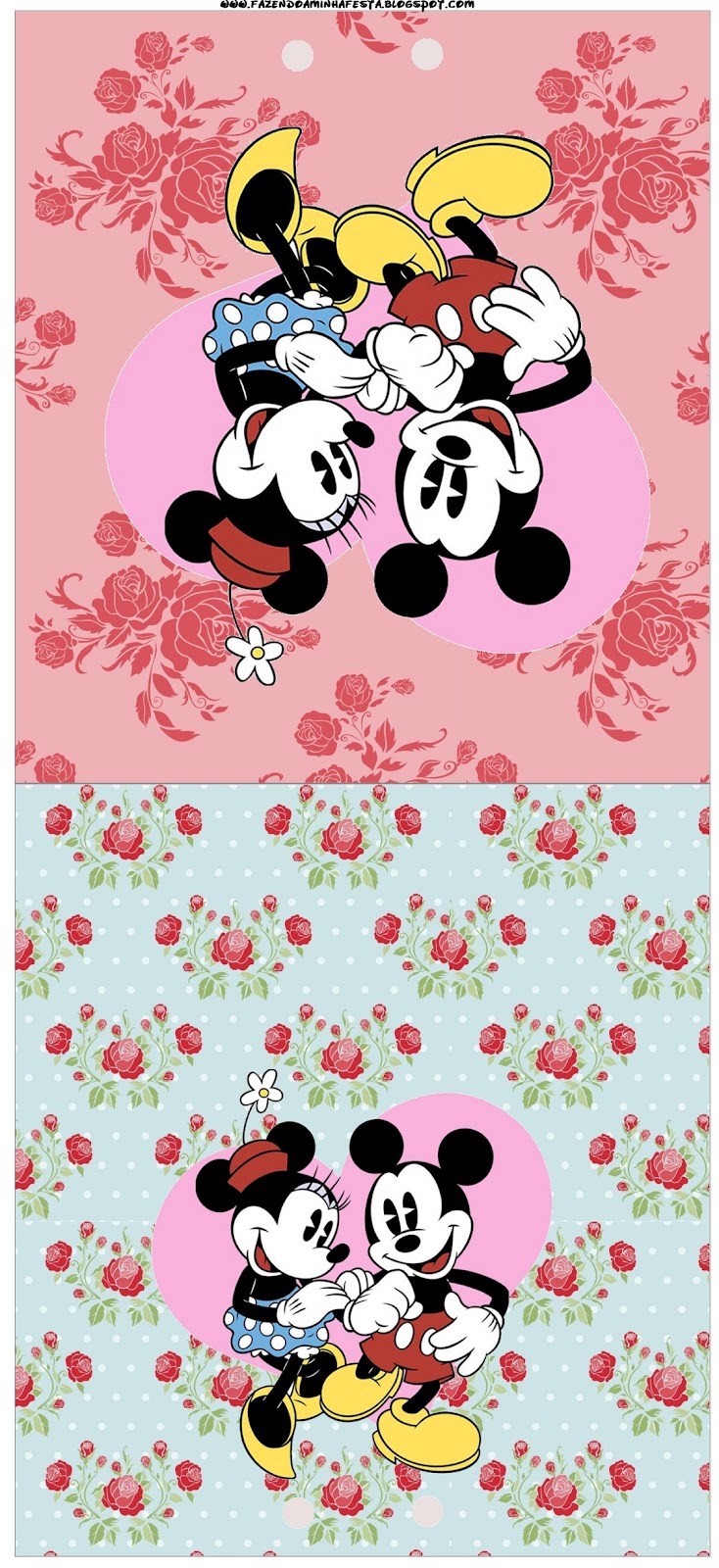 Mickey e Minnie Romântico Vintage – Kit Completo com molduras para convites, rótulos para guloseimas, lembrancinhas e imagens!