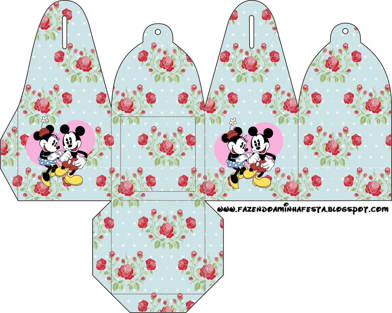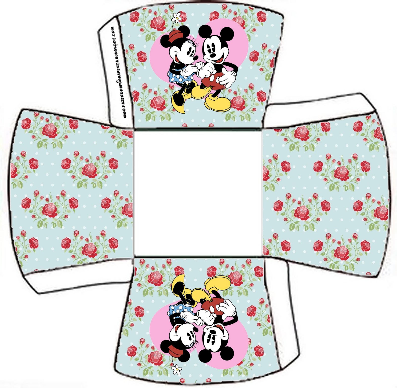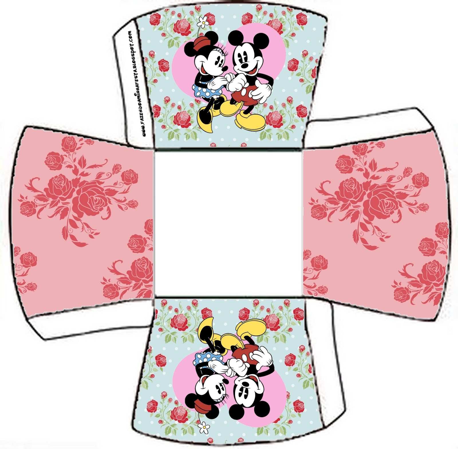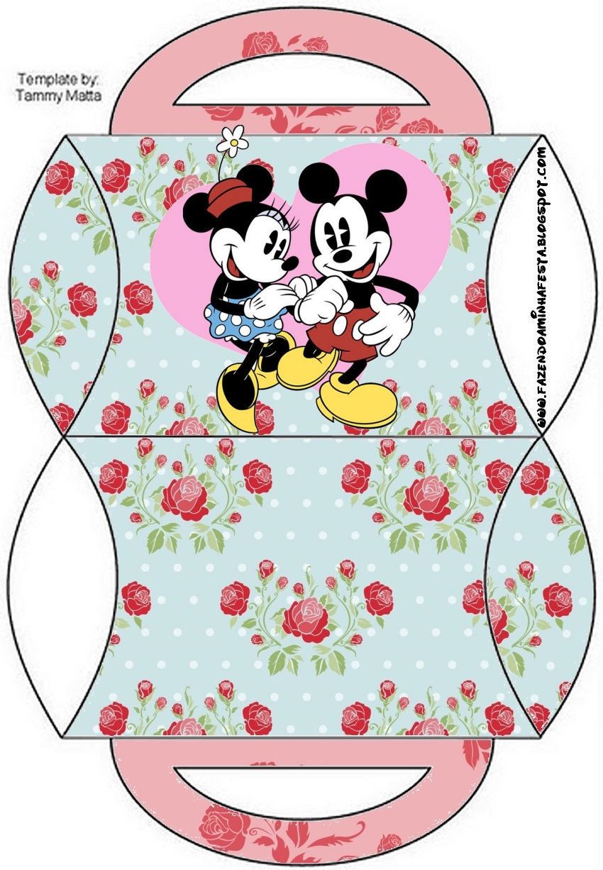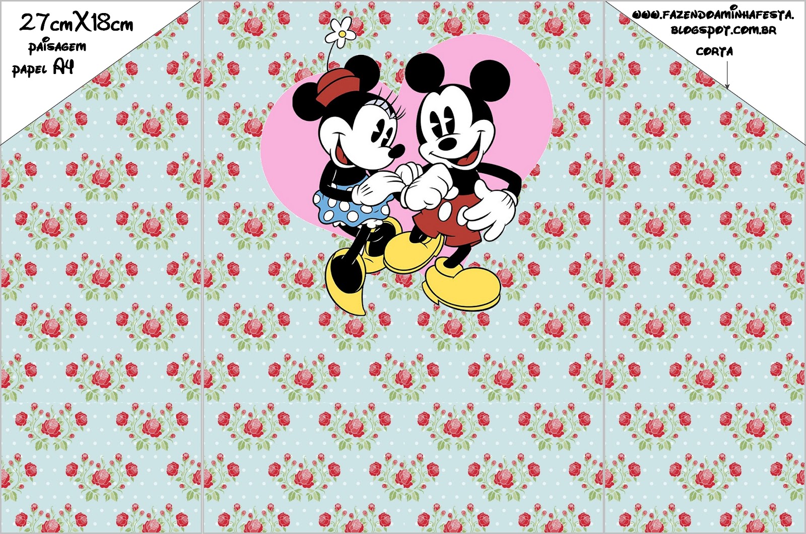 Convite Caixa Fundo Mickey e Minnie Romântico Vintage:
