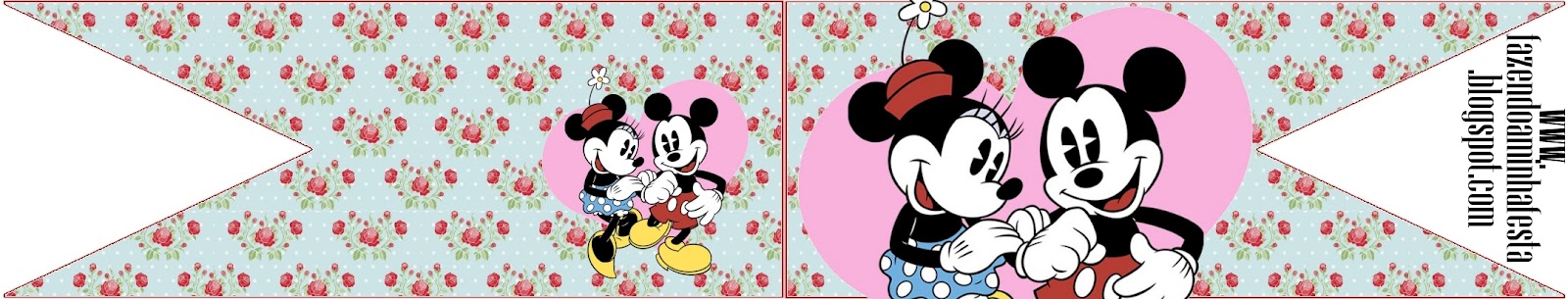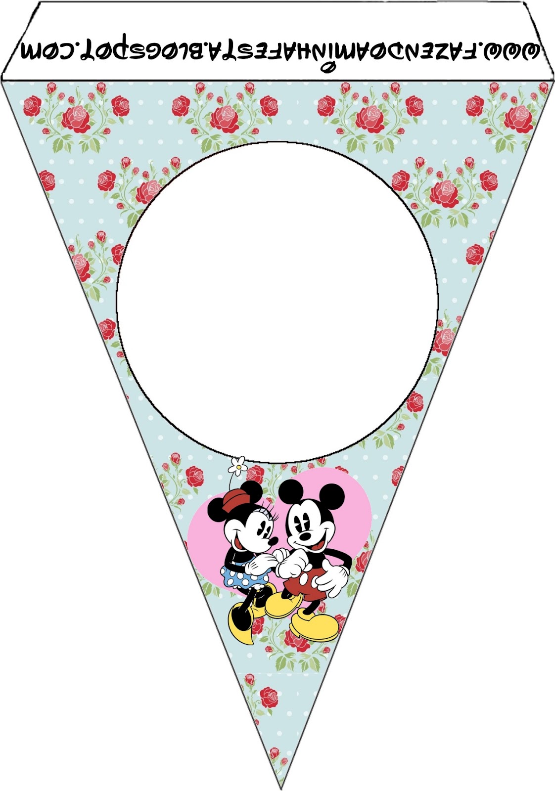 Bandeirinha Sanduiche Mickey e Minnie Romântico Vintage: