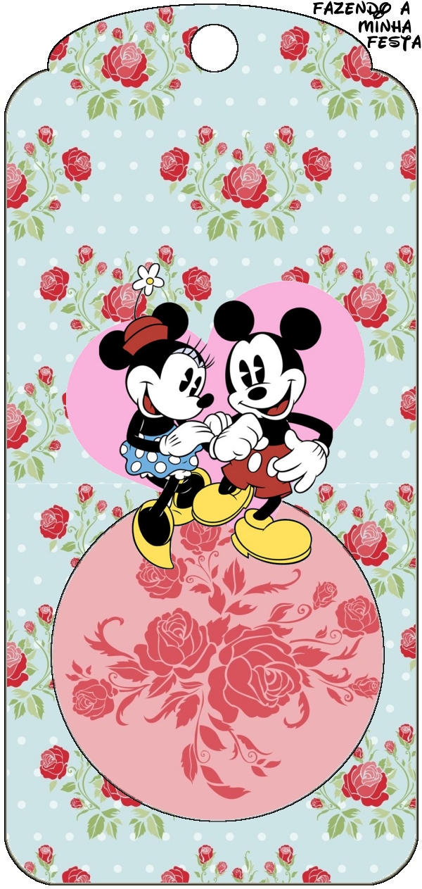 Tag Agradecimento Mickey e Minnie Romântico Vintage: