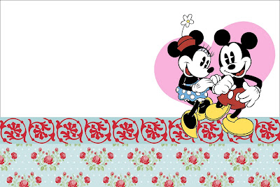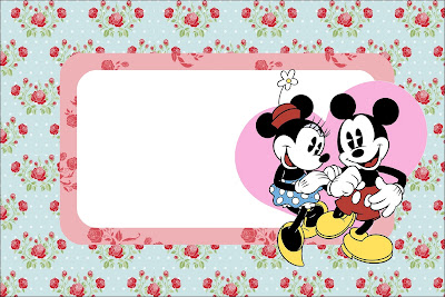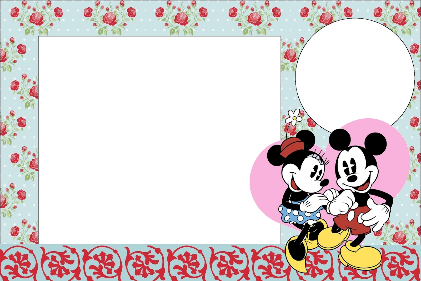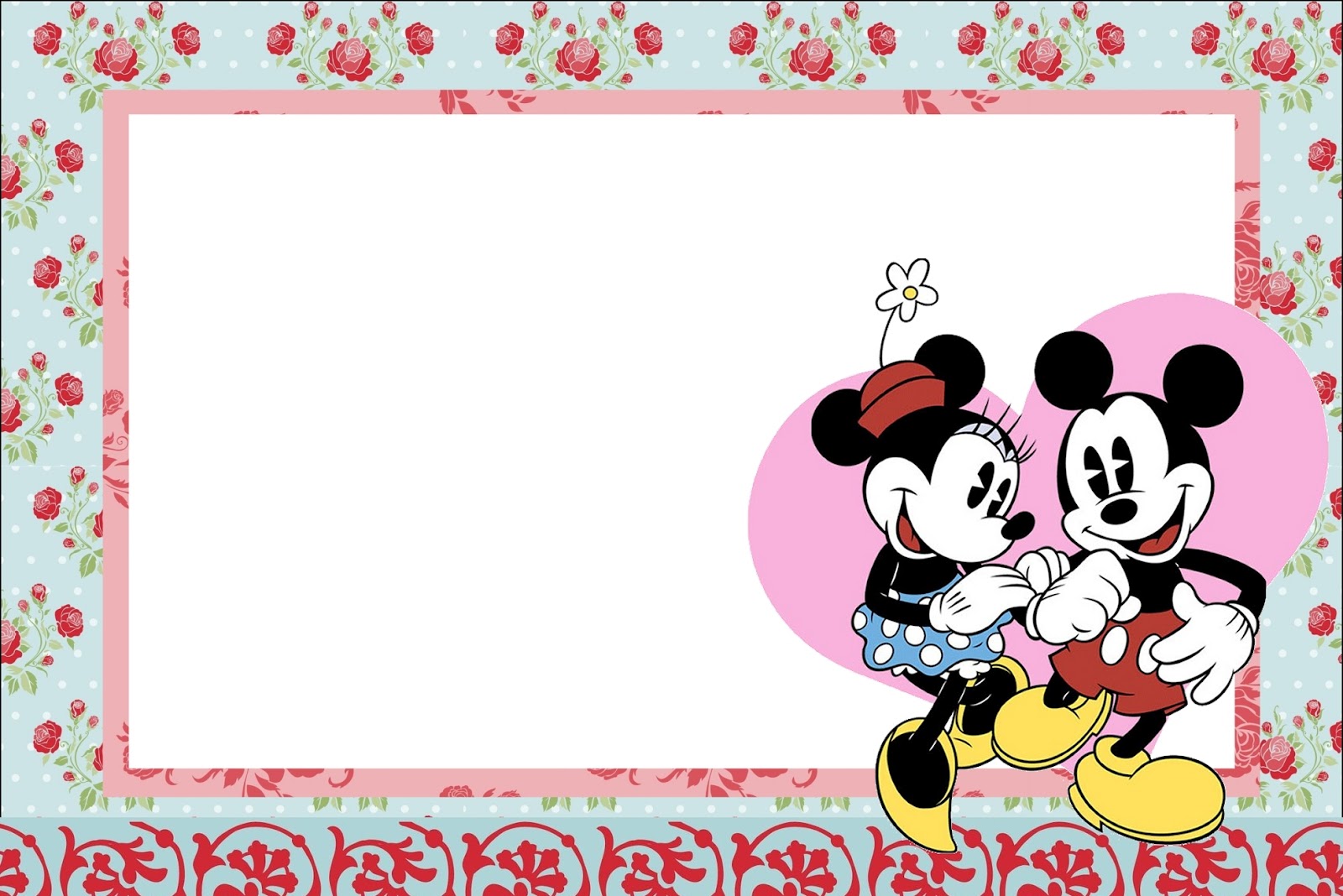 Moldura Convite e Cartão Mickey e Minnie Romântico Vintage: