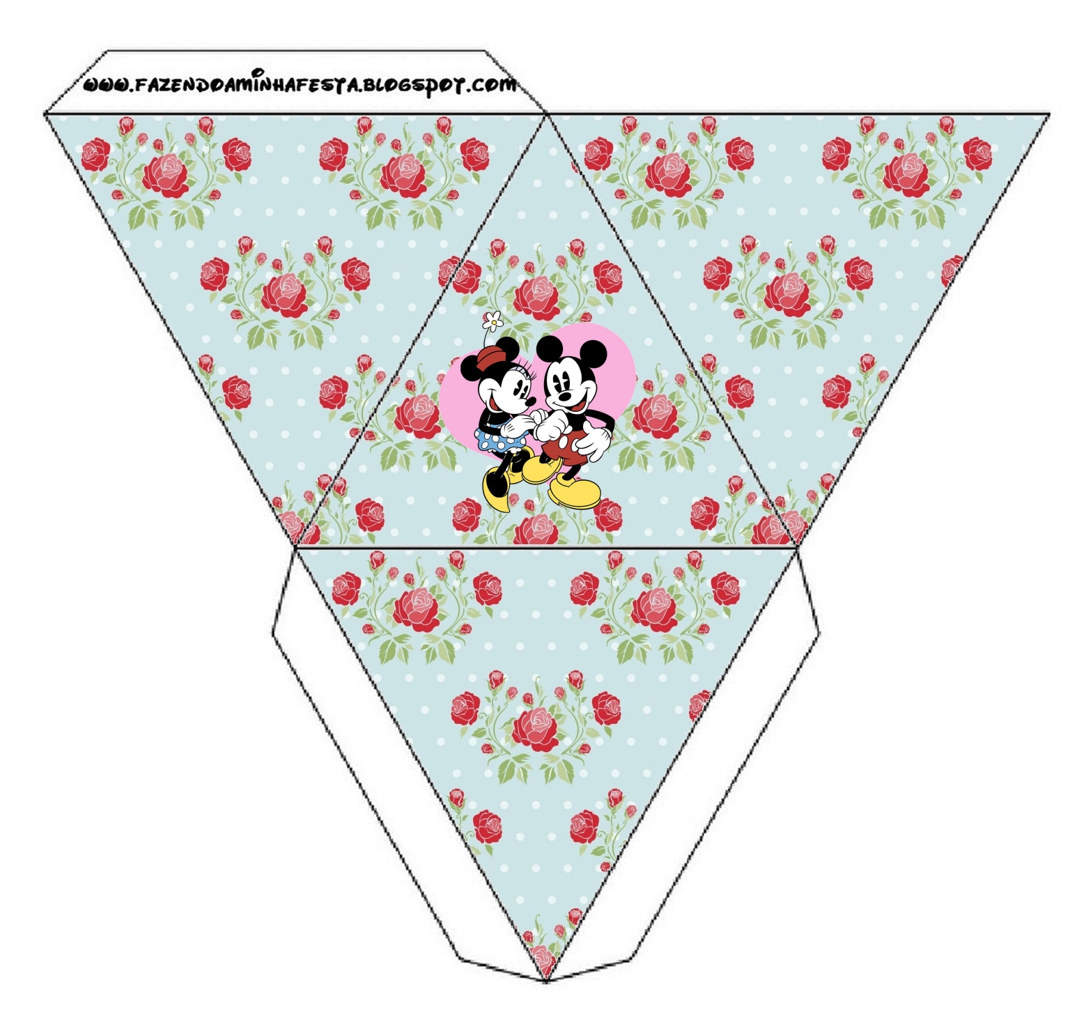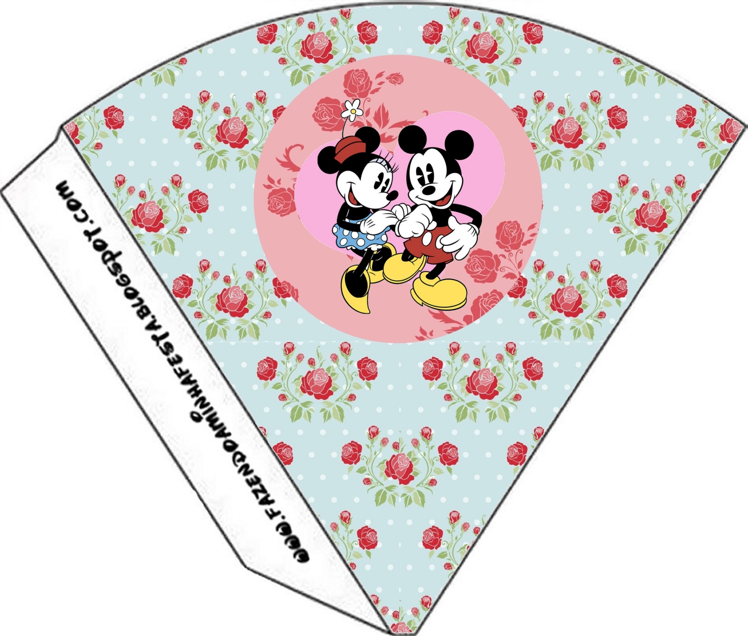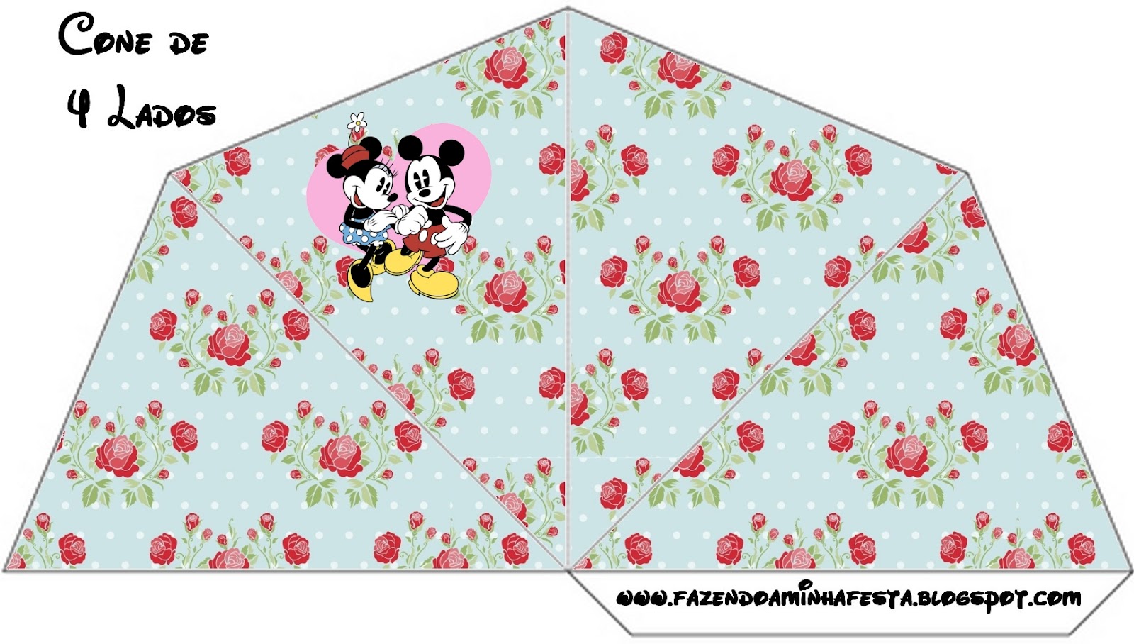 Cone Guloseimas 4 lados Mickey e Minnie Romântico Vintage: