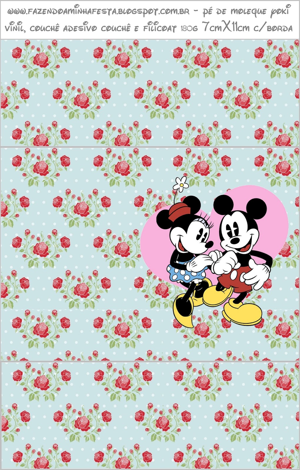 Rótulo Pirulito Mastigável Mickey e Minnie Romântico Vintage: