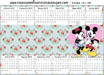 Convite Calendário 2012 Mickey e Minnie Romântico Vintage: