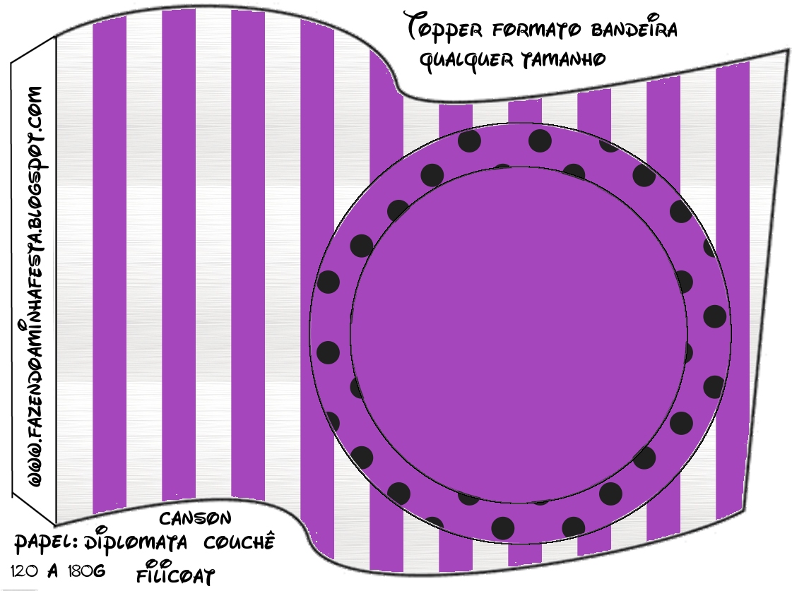 Convite Pirulito qualquer tamanho Roxo, Prata e Preto: