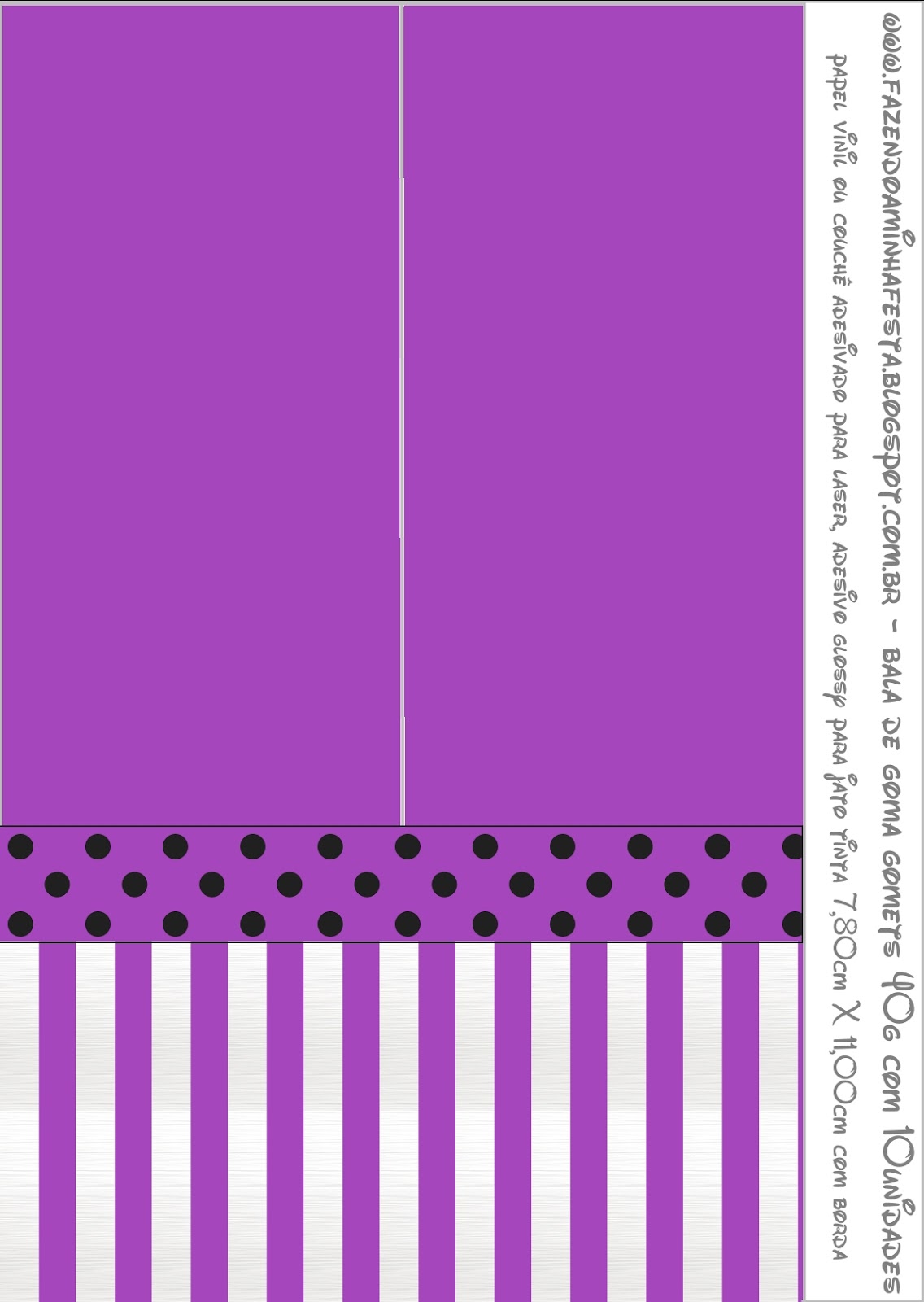 Rótulo Bala de Goma Gomets Roxo,Prata e Preto: