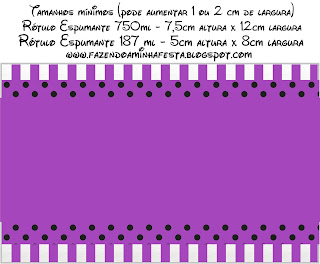 Rótulo Garrafinha de Água Roxo,Prata e Preto: