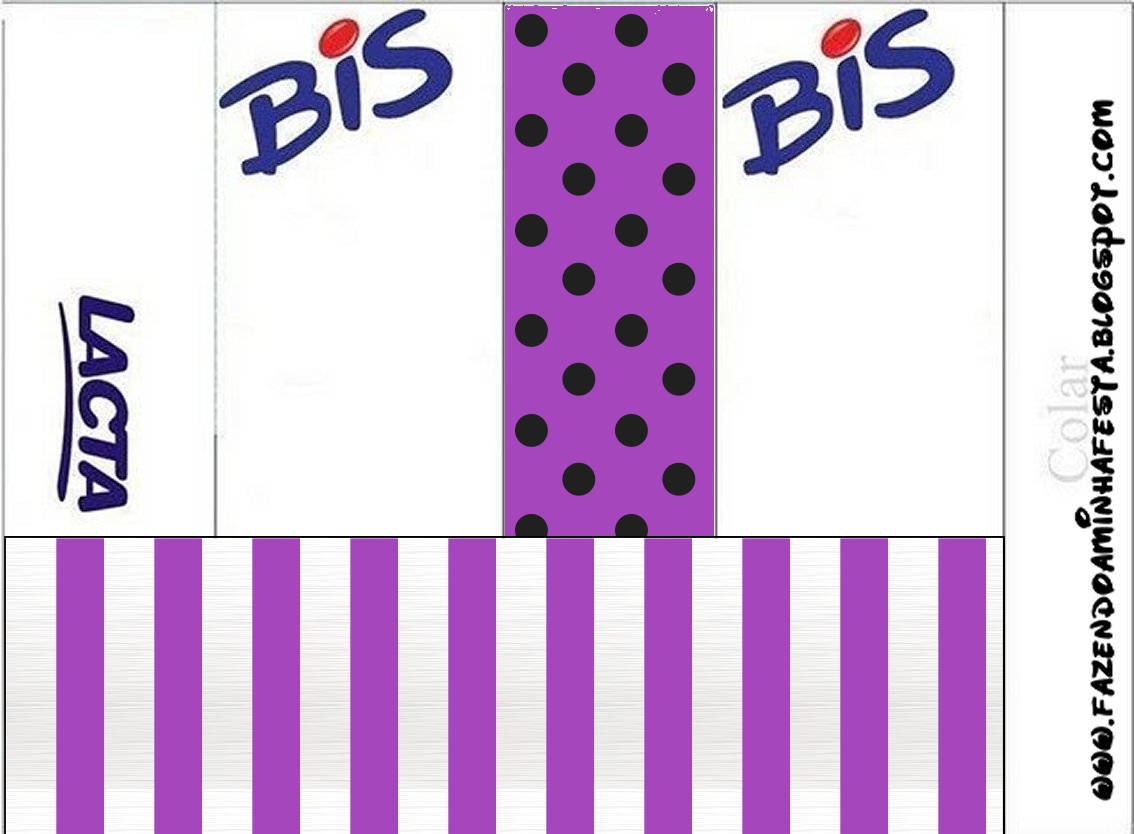 Rótulo Bis com Logo Lacta Roxo,Prata e Preto: