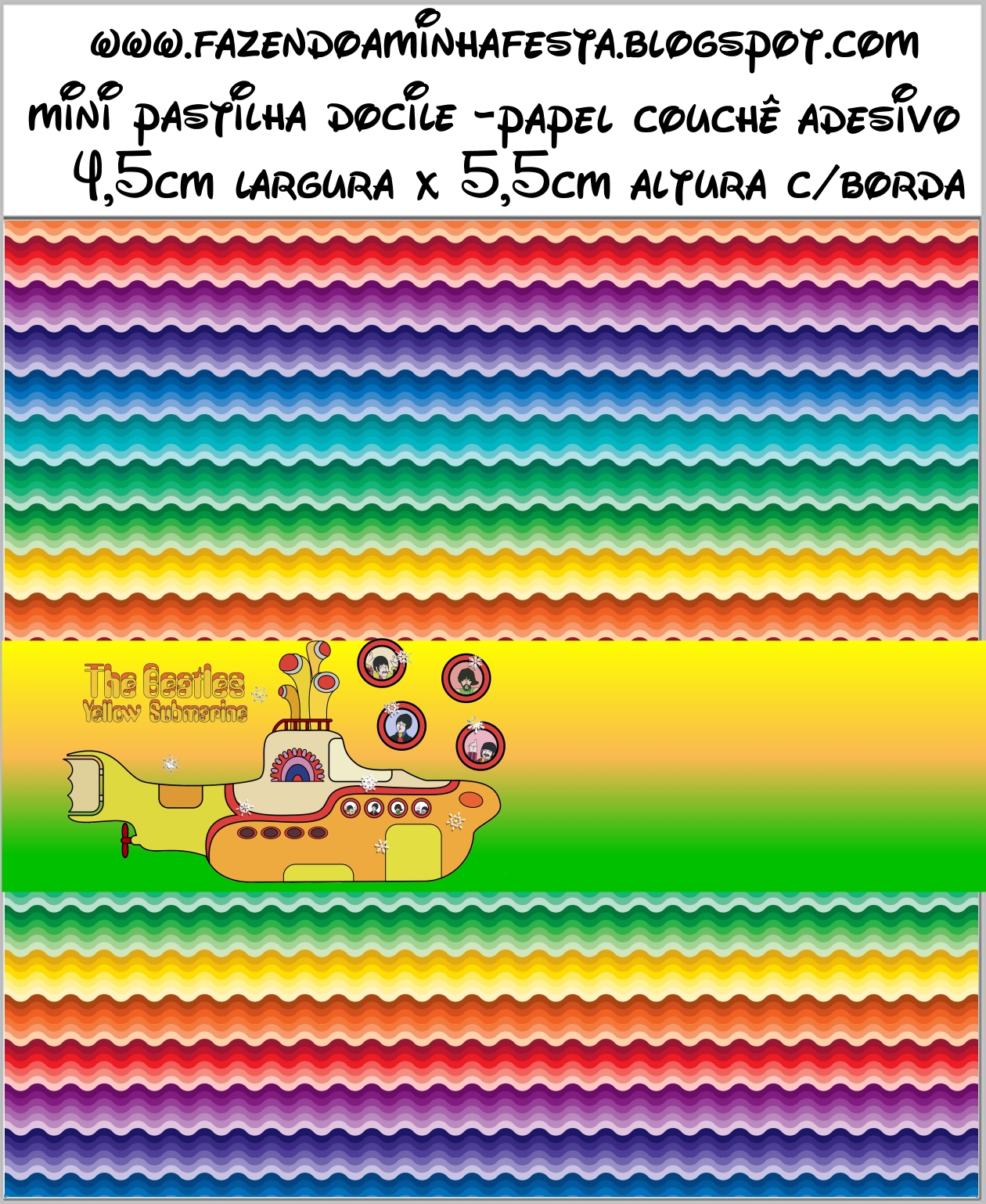 Convite Pirulito qualquer tamanho The Beatles Yellow Submarine: