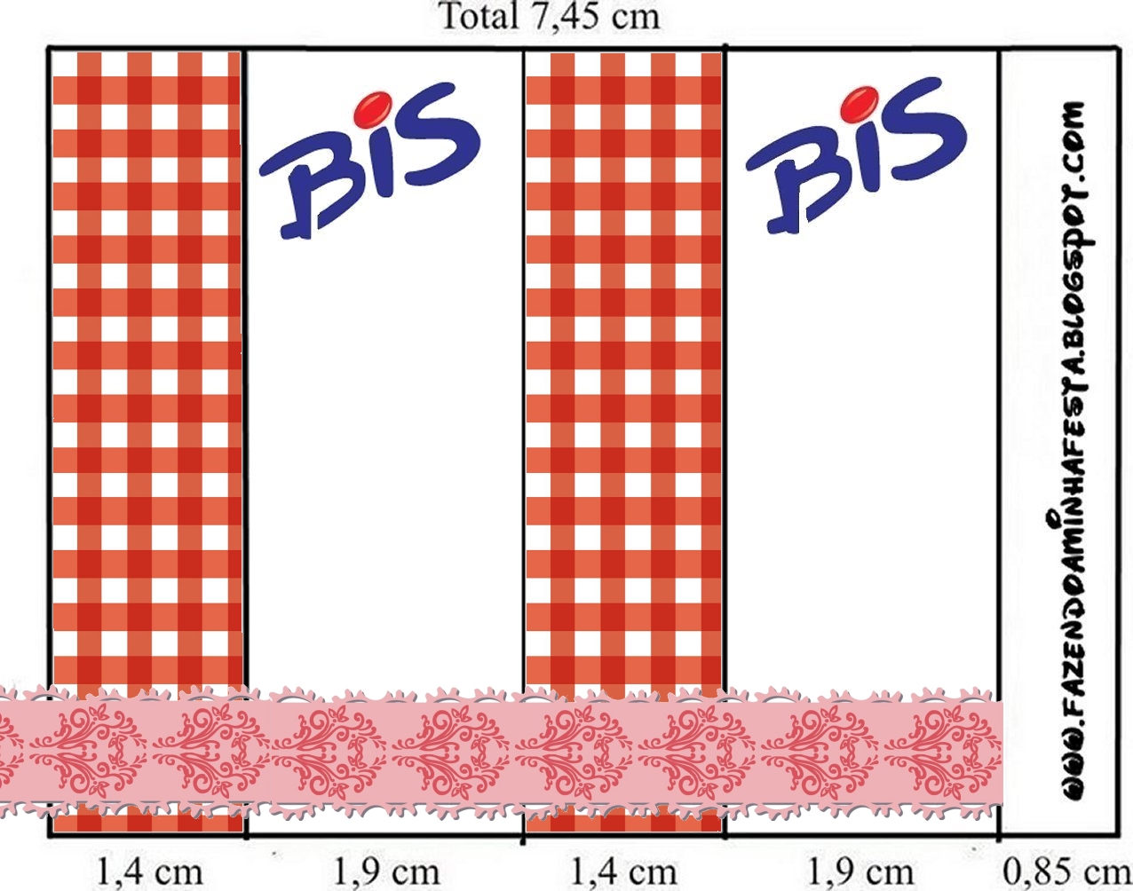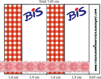 Rótulo Bis com Logo Lacta Xadrez Vermelho e Branco: