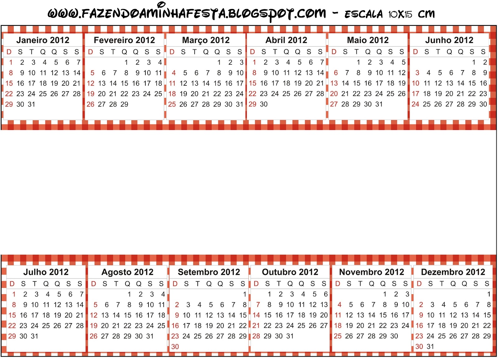 Convite Calendário 2012 Xadrez Vermelho e Branco: