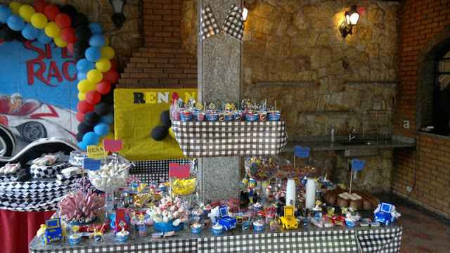 Nossa Leitora Adriana Oliveira usou nossos moldes limpos e personalizou com o Tema Speed Racer para fazer a festinha de 10 anos de seu filho Renan!!