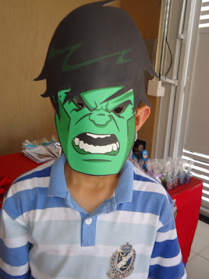 Nossa Leitora Cristiane Royo Porfirio fez essa linda festa para seu sobrinho Henrique de 9 anos com o Tema Os Vingadores!! Vejam que linda a decoração, ela usou os Bonecos 3D que temos disponível no blog e colocou máscaras para as crianças!!