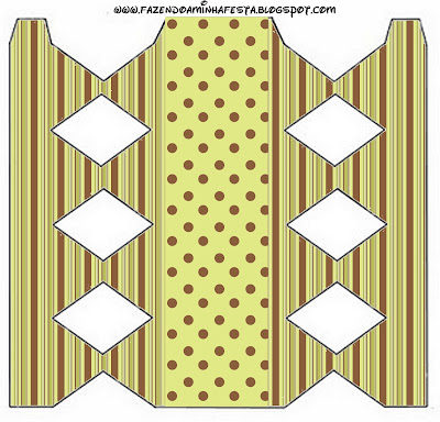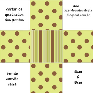 Convite Caixa Fundo Marrom e Verde Poá e Listras:
