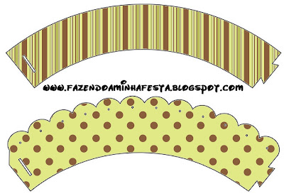 Saias Wrappers para Cupcakes Marrom e Verde Poá e Listras: