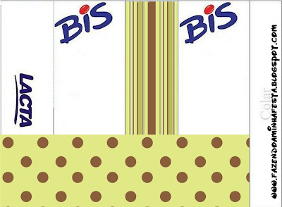 Rótulo Bis com Logo Lacta Marrom e Verde Poá e Listras: