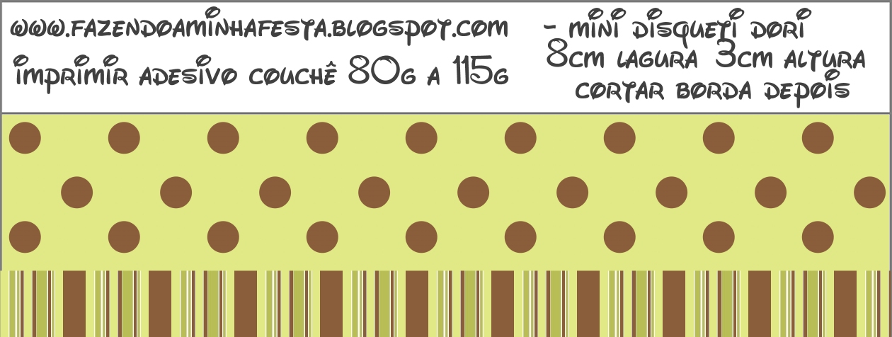 Rótulo Mini Disqueti Dori Marrom e Verde Poá e Listras: