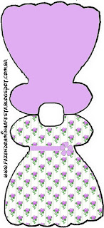 Convite Vestido Provençal Branco e Lilás com Flores: