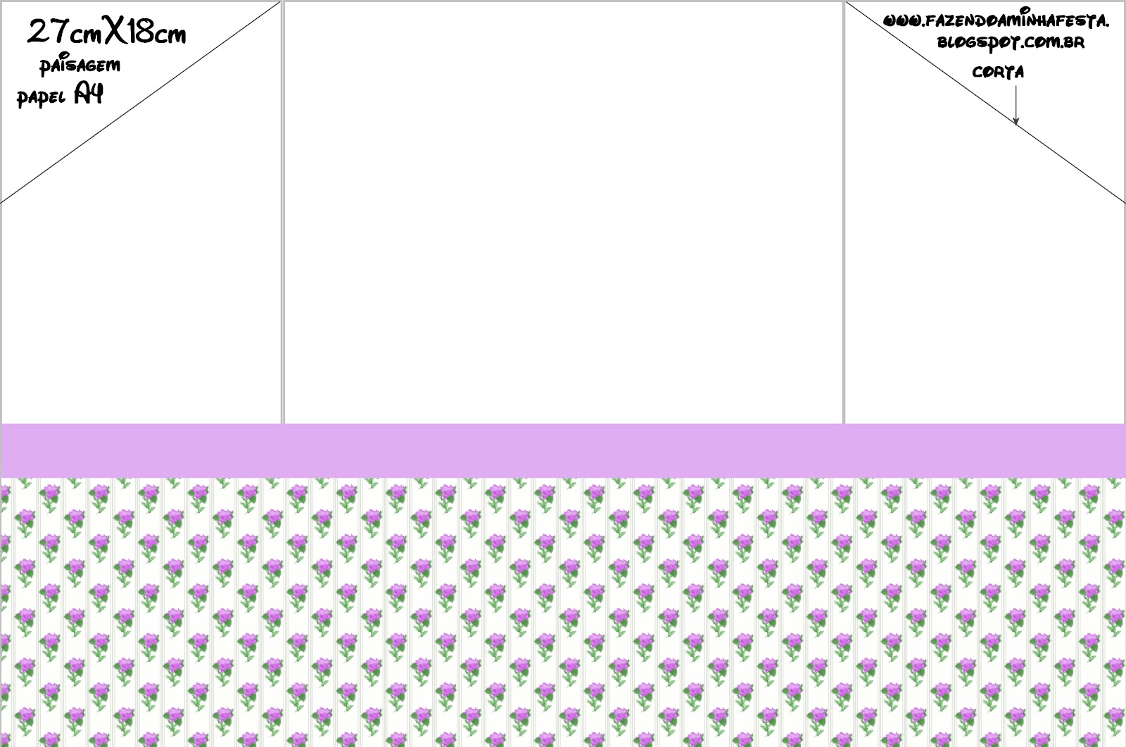 Convite Pirulito qualquer tamanho Provençal Branco e Lilás com Flores: