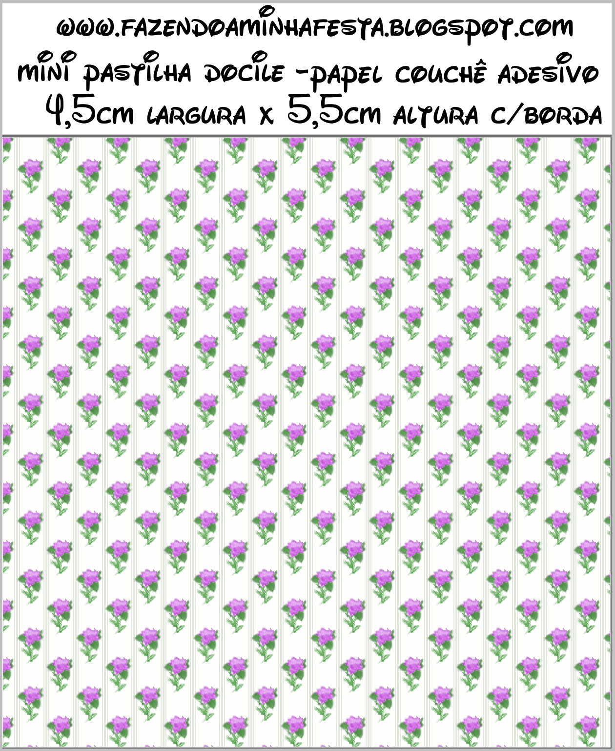 Rótulo Mini Pastilha Docile Provençal Branco e Lilás com Flores: