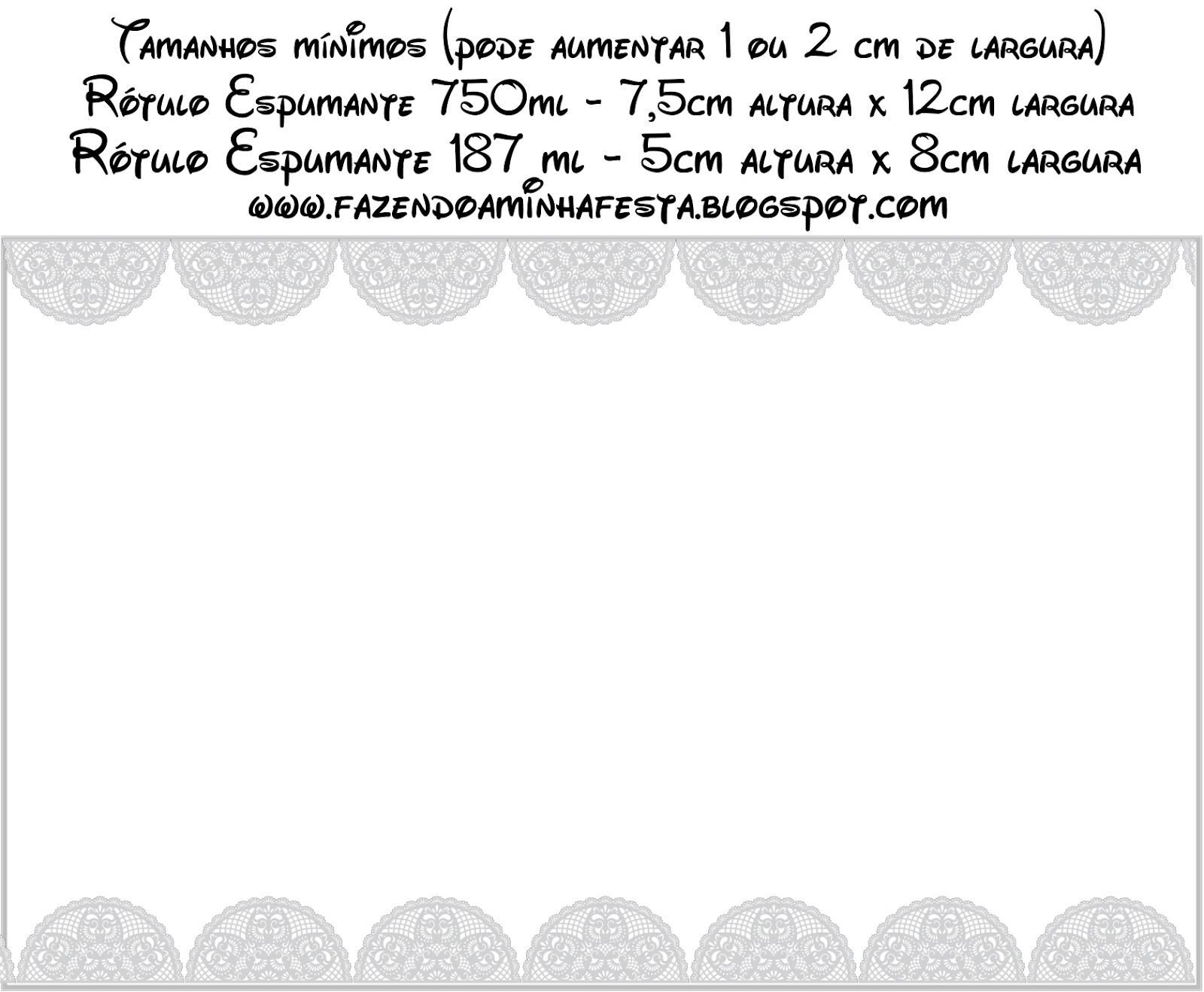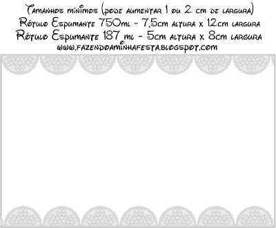 Rótulo Champagne,Vinho e Espumante Provençal em Renda Branca: