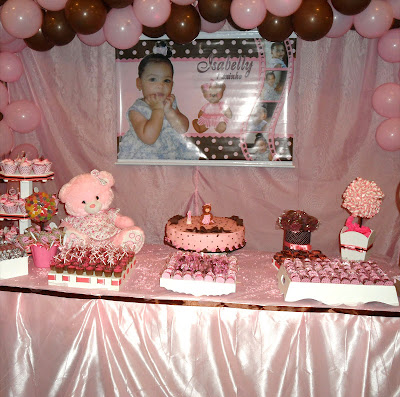 Ficou super fofa a festa que nossa Leitora Juliana Martins fez para sua filha Isabelly com o Tema Ursinha Marrom e Rosa!!