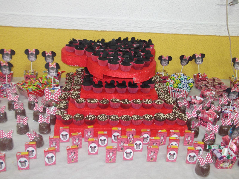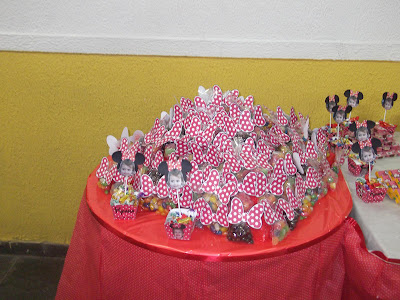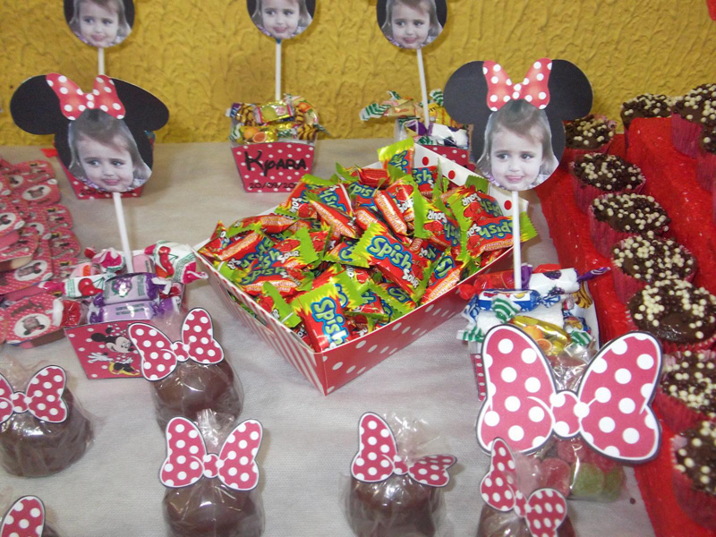 Nossa Leitora Monica Borba dos Santos fez essa linda festa para a Kyara de 2 anos com o Tema Minnie Vermelha!! Vejam a decoração com os própios potinhos de doces! Que legal!