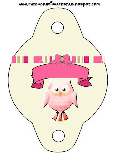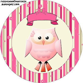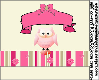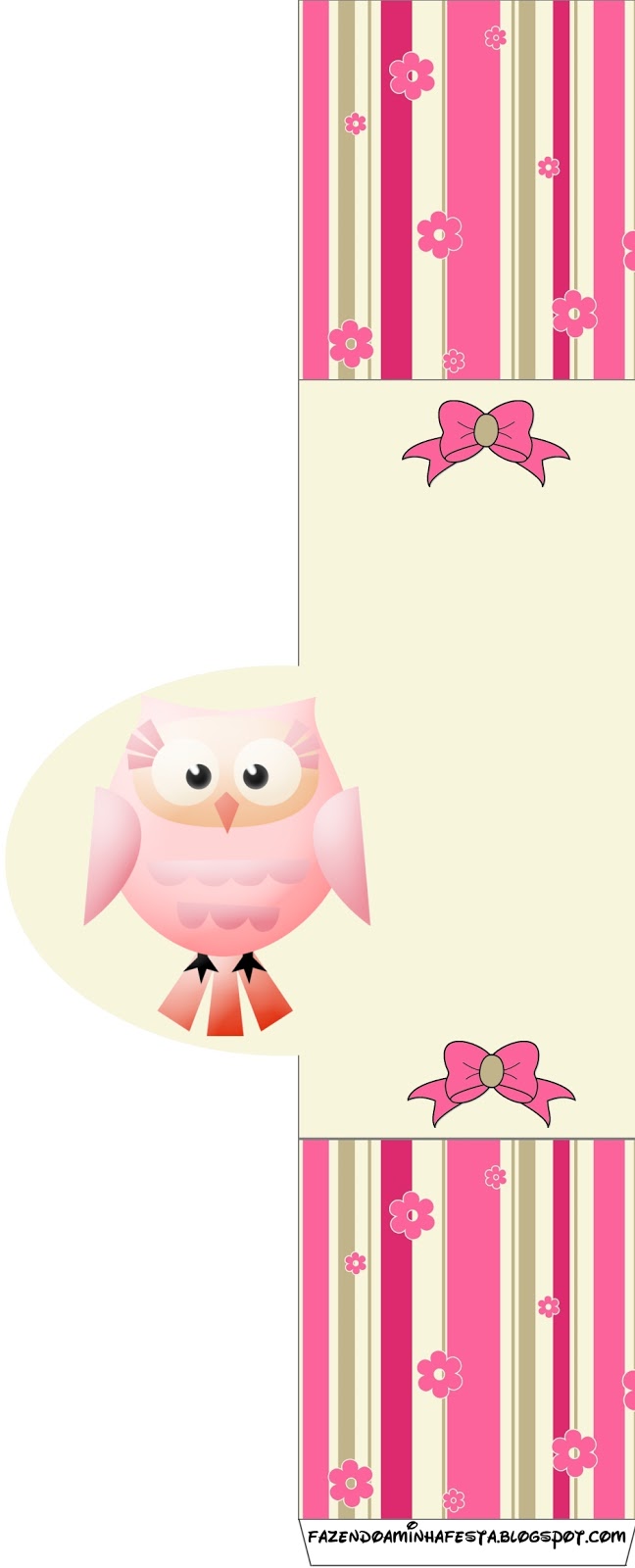 Coruja Rosa e Bege – Kit Completo com molduras para convites, rótulos para guloseimas, lembrancinhas e imagens!