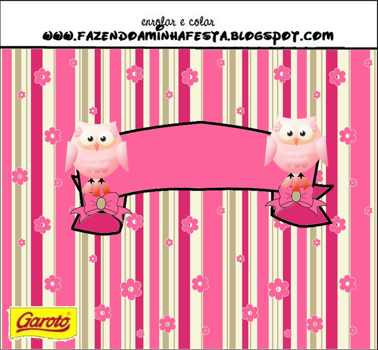 Rótulo Pastilha Garoto Coruja Rosa e Bege: