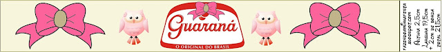Rótulo Guaraná Caçulinha Coruja Rosa e Bege: