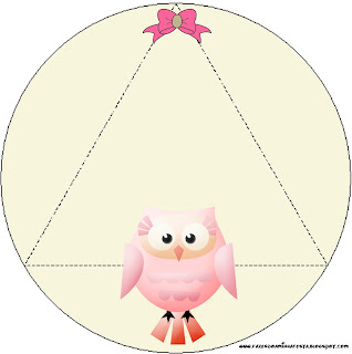 Convite Pirulito qualquer tamanho Coruja Rosa e Bege: