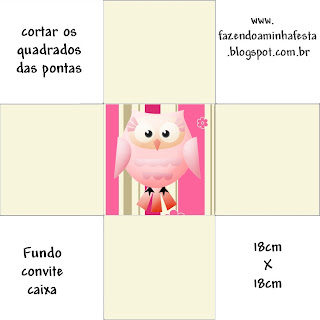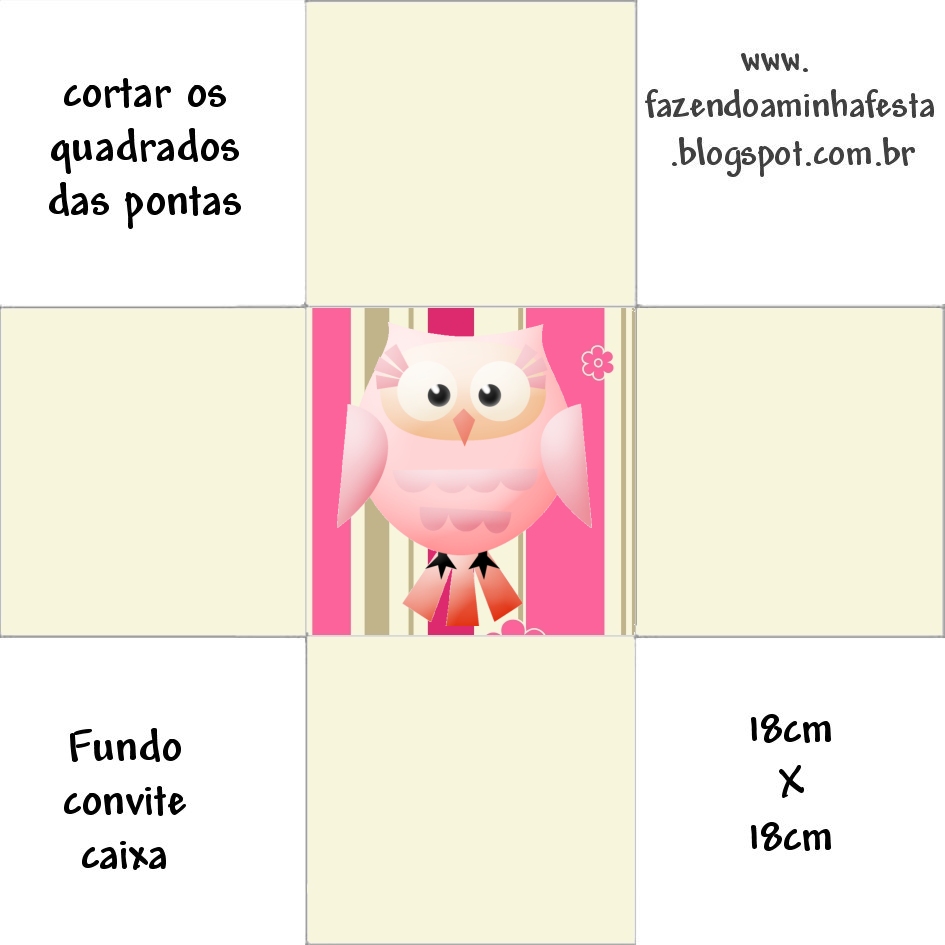 Convite Caixa Tampa Coruja Rosa e Bege: