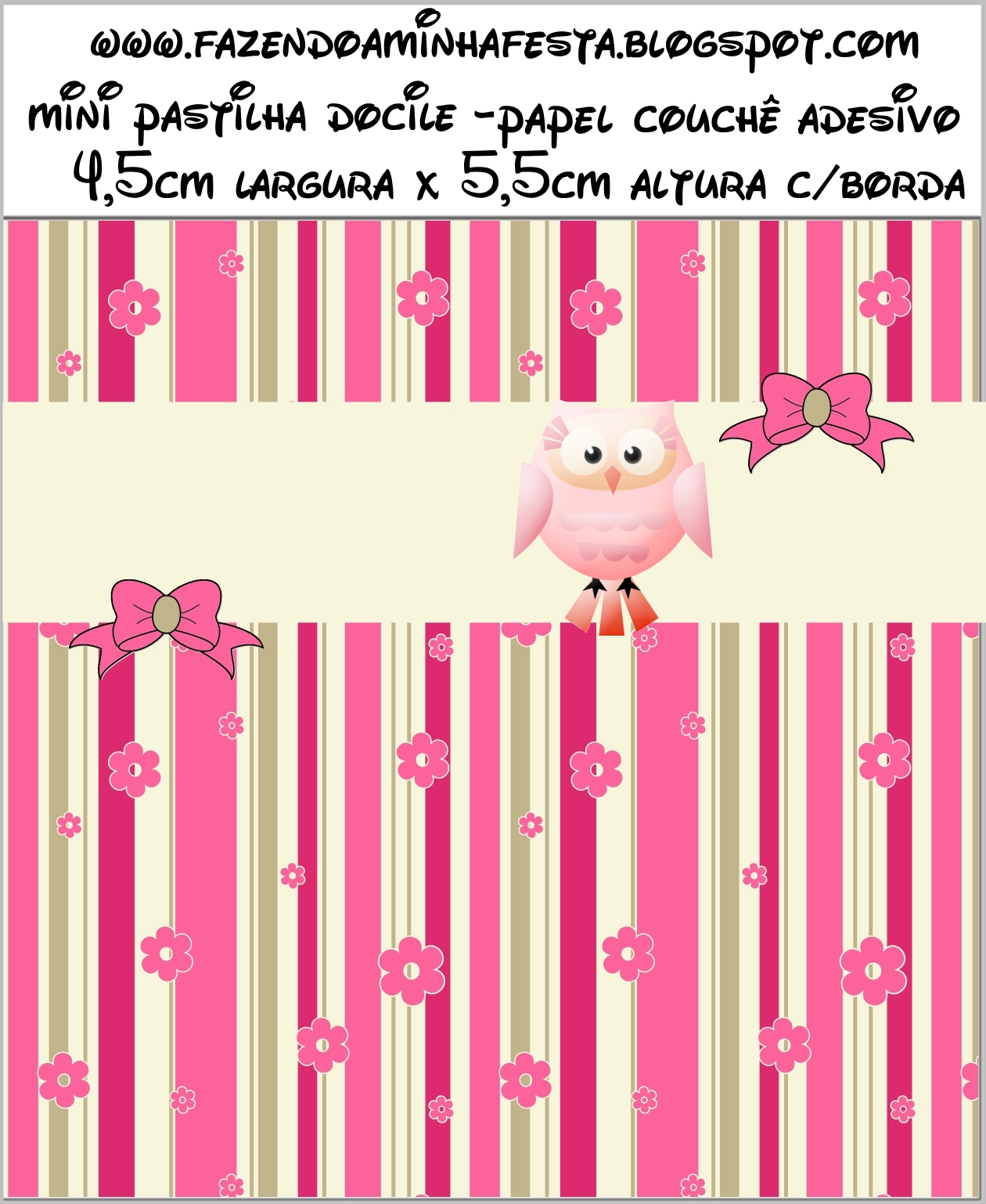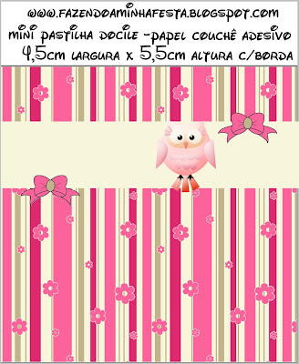Rótulo Mini Pastilha Docile Coruja Rosa e Bege: