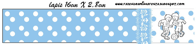 Rótulo Lápis Futebol Poá Azul: