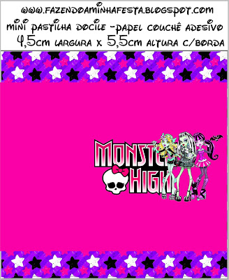 Rótulo Mini Pastilha Docile Monster High Roxo e Pink: