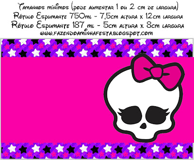 Rótulo Champagne,Vinho e Espumante Monster High Roxo e Pink: