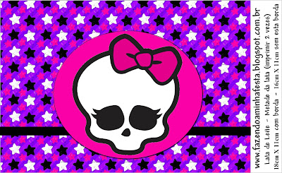 Rótulo Lata de Leite Monster High Roxo e Pink: