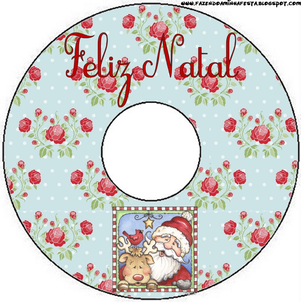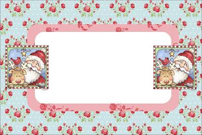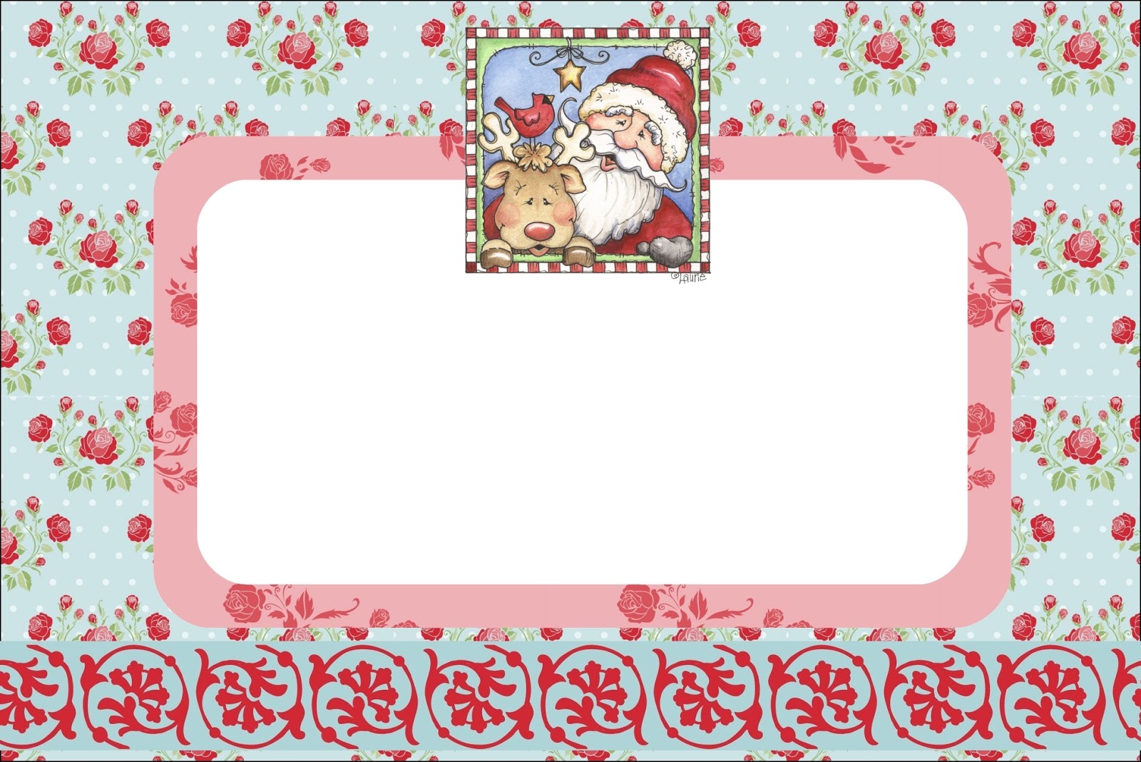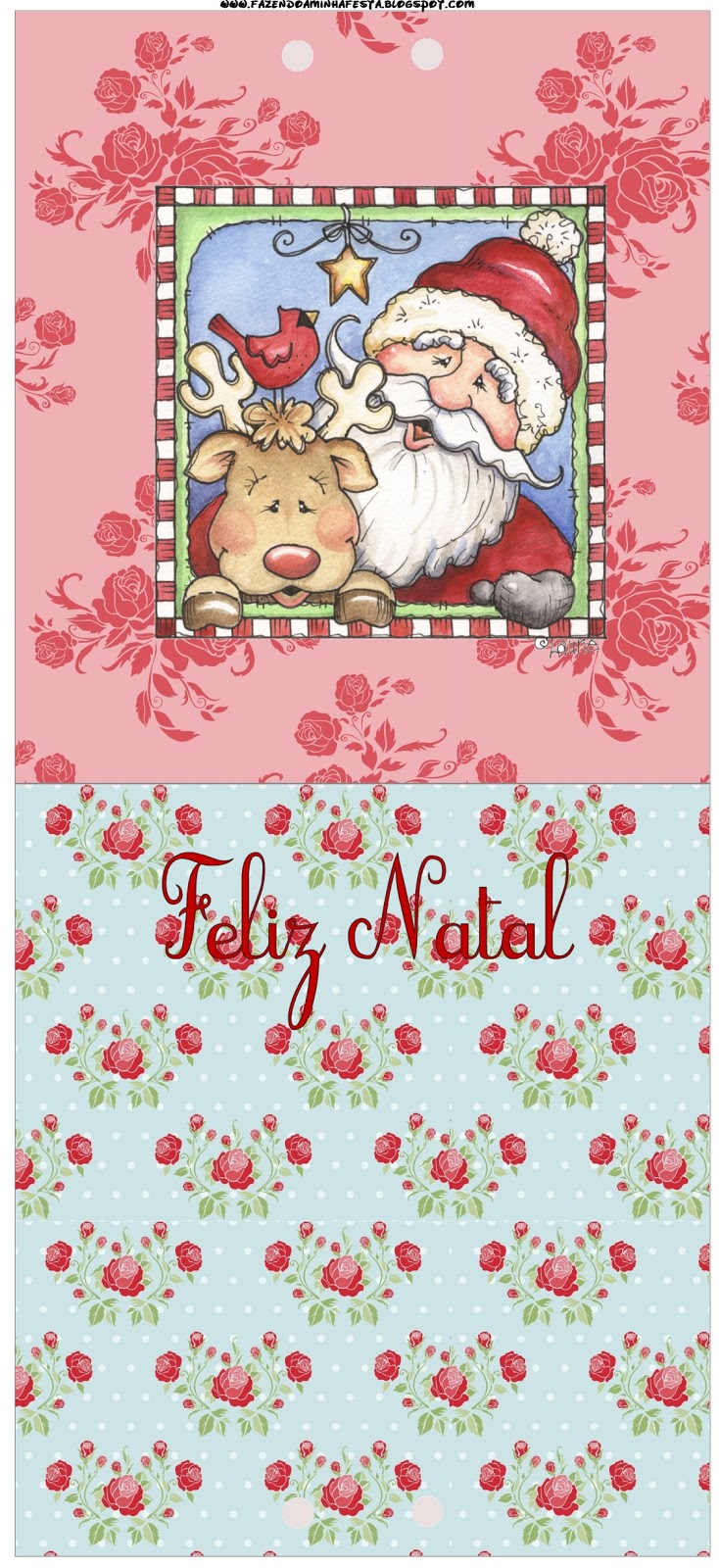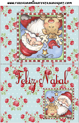 Natal com Papai Noel Azul e Vermelho com Flores – Kit Completo com molduras para convites, rótulos para guloseimas, lembrancinhas e imagens!