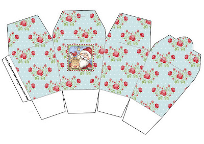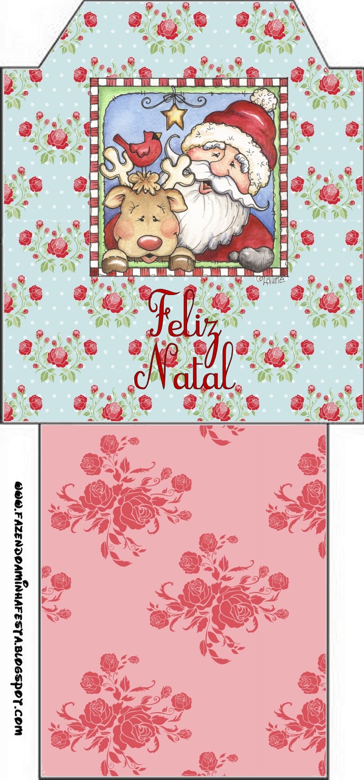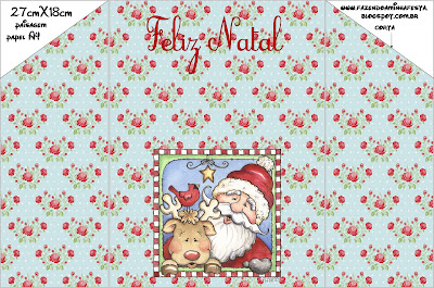 Envelope Fritas Natal com Papai Noel Azul e Vermelho com Flores: