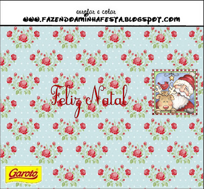 Rótulo Nescauzinho Natal com Papai Noel Azul e Vermelho com Flores: