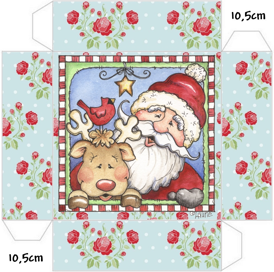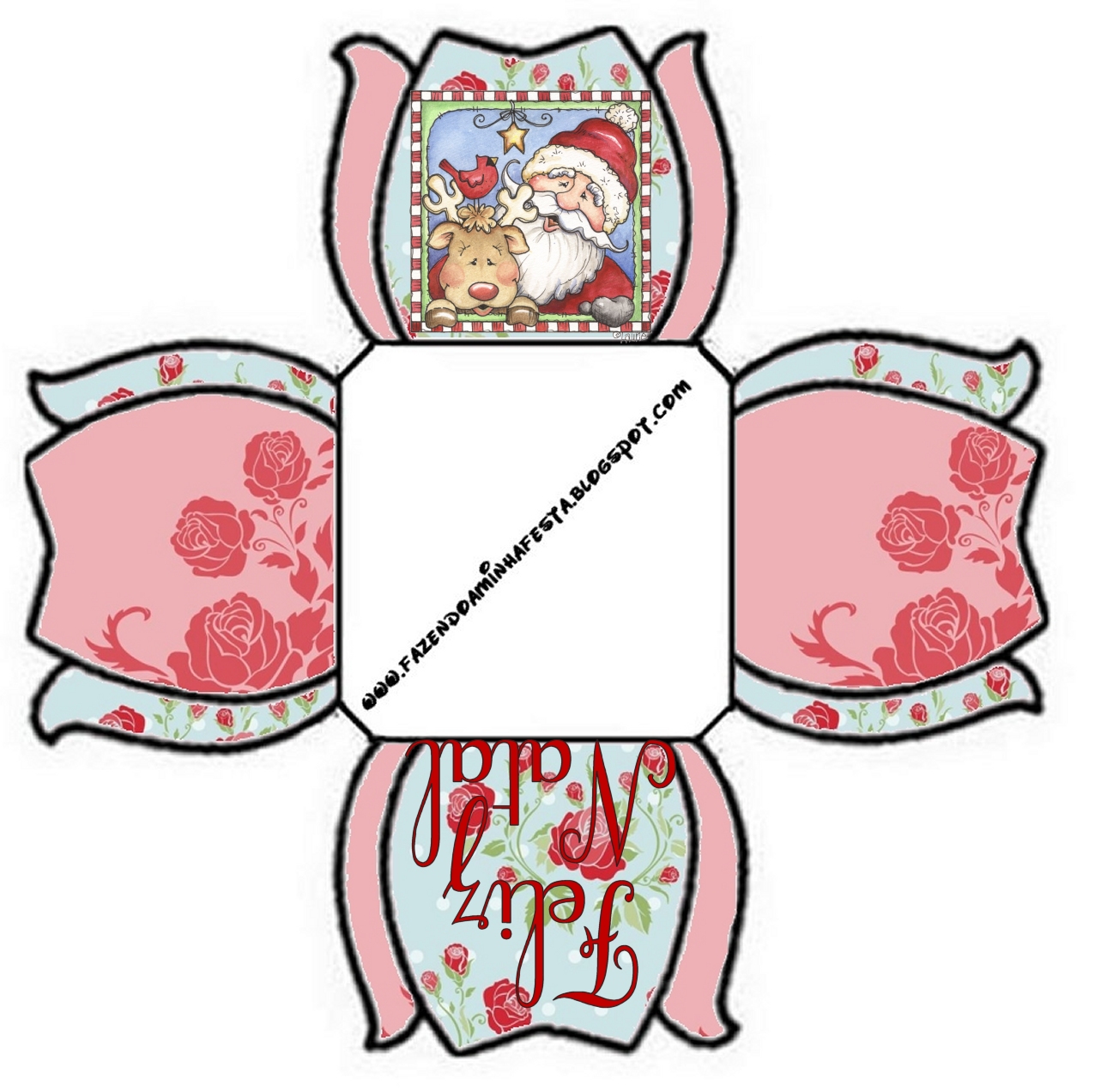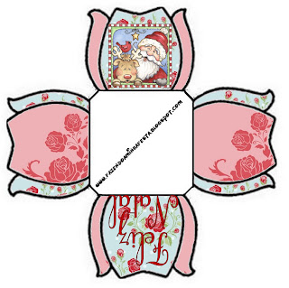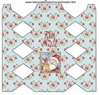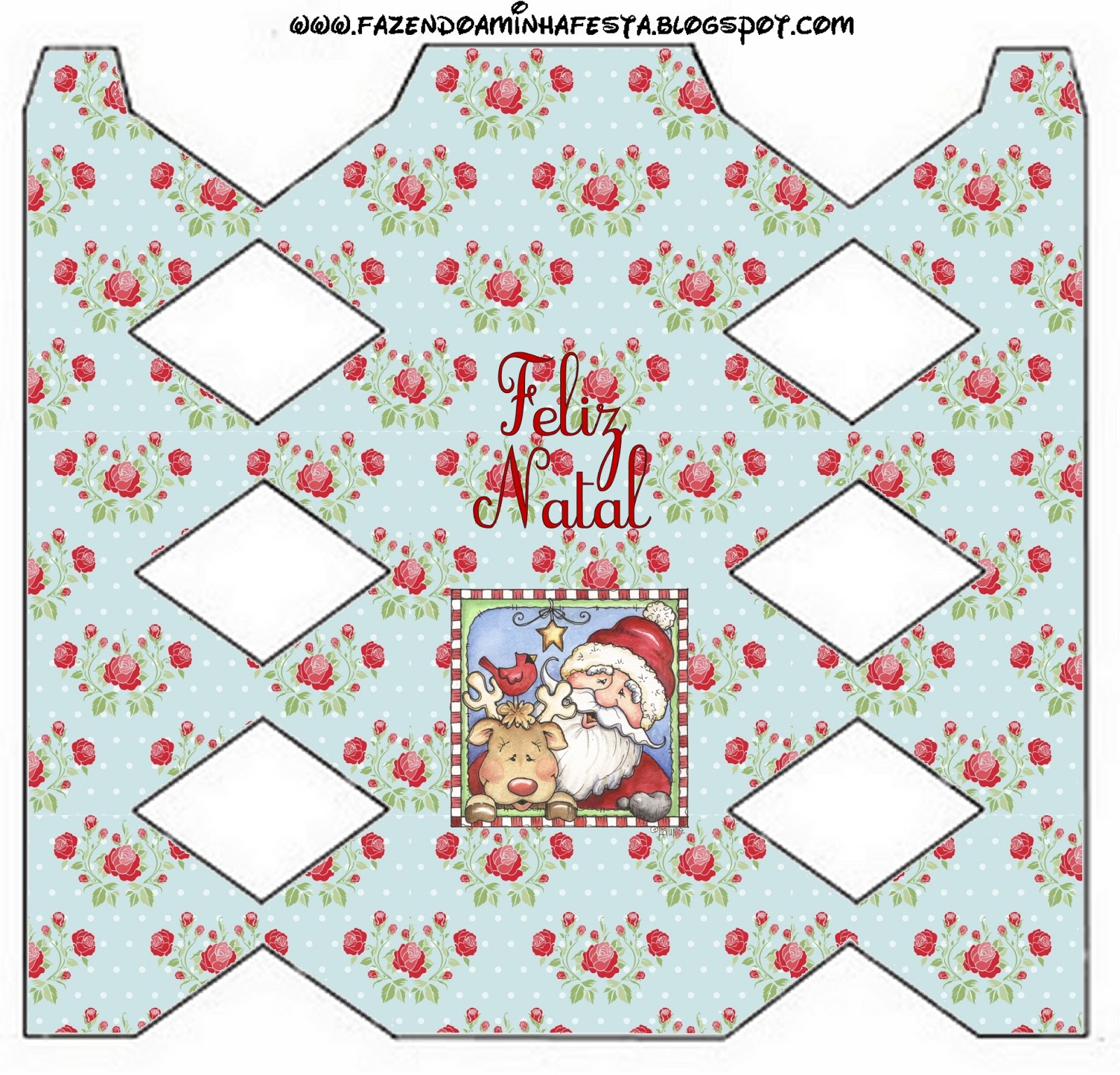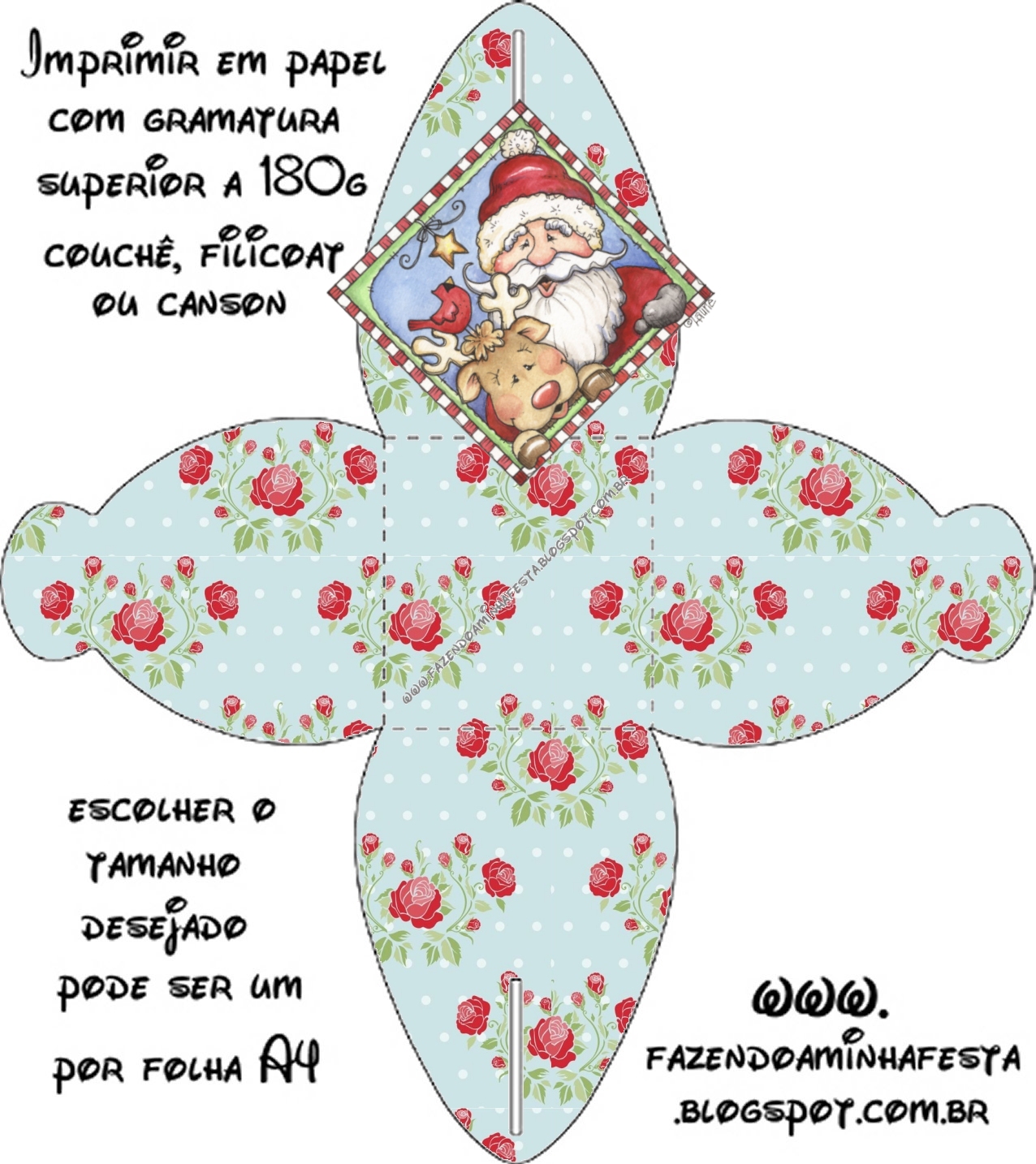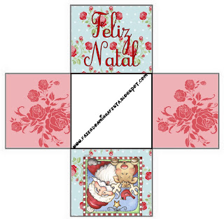 Caixa Fatia Natal com Papai Noel Azul e Vermelho com Flores: