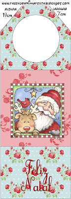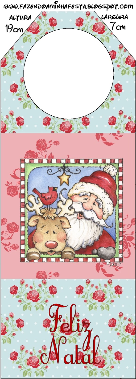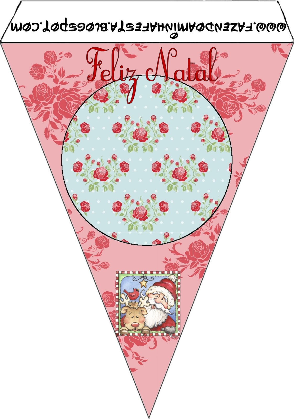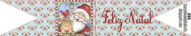Bandeirinha Sanduiche Natal com Papai Noel Azul e Vermelho com Flores: