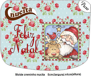 Rótulo Creminho Nucita Natal com Papai Noel Azul e Vermelho com Flores: